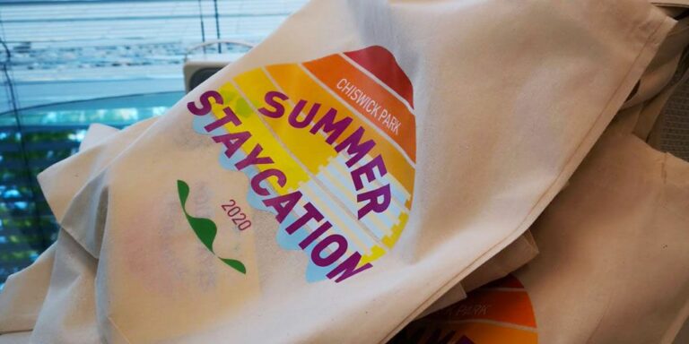 To coincide with the launch of our Summer Staycation and encourage Guests to avoid using plastic bags, we gave out limited-edition, reusable Chiswick Park Summer Staycation tote bags to our Guests who are working on the Park.
